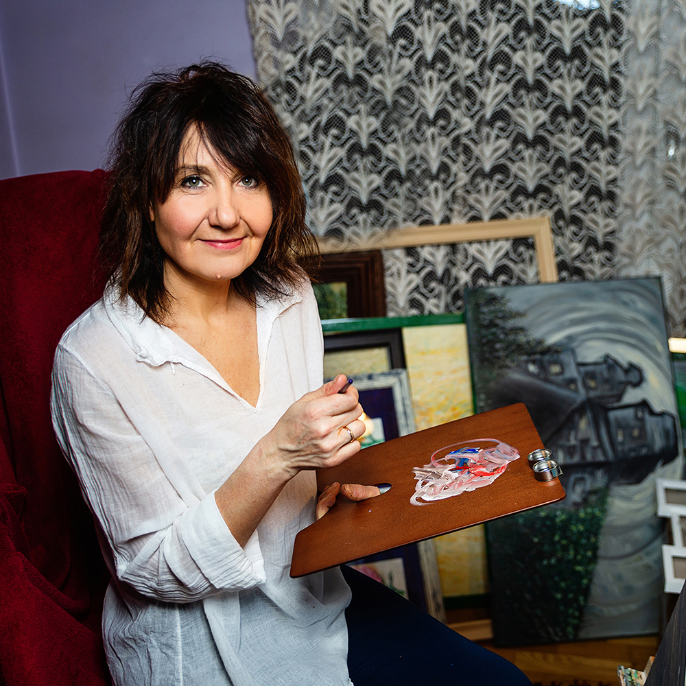 Malarstwem zajmuję się hobbystycznie, z radością i ciekawością. Wszystkimi technikami, na różnych podobraziach.